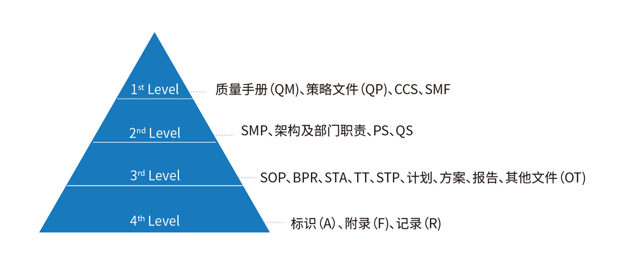 公司建立了质量体系四级文件架构,中英双语化体系,
